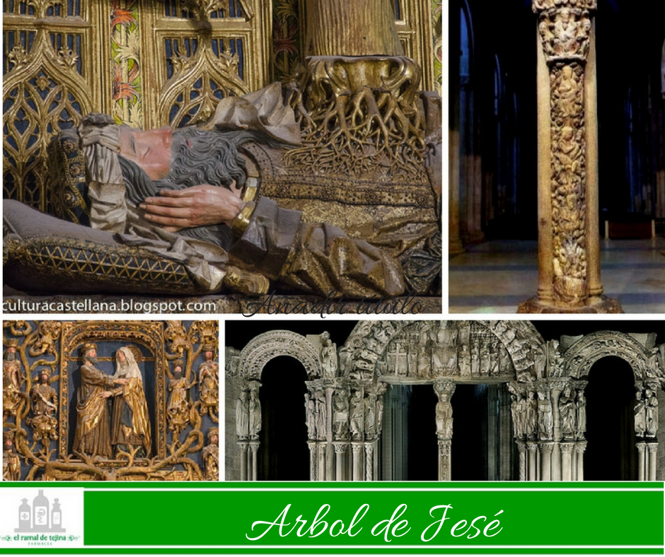 Para lo romanos, así como para otras culturas, estos arcos enramados venían a representar al árbol sagrado, la figura mítica que unía lo terrenal con lo celestial, lo sagrado. Tanto el Haya (Fagus sylvaticus) como el Acebo (Ilex angustifolia) fueron árboles que se utilizaron con este propósito. El Acebo estuvo vinculado al Dios de la agricultura, Saturno, y se mostraba presente en sus fiestas del solsticio de invierno. A la luz de las velas se celebraba que las actividades agrícolas cesaban con la llegada del invierno y los días comenzaban a ser mayores. Esta fecha terminó cristianizándose con la celebración de la Navidad, son las hojas y los frutos rojos del Acebo las que solemos utilizar en los adornos navideños. El árbol de Jesé es otro ejemplo de sincretismo religioso que estuvo especial énfasis en la época de la conquista de Canarias. En él se representaba el árbol genealógico de Jesús con la intención, sobre todo, de reforzar la imagen de la Virgen de especial relevancia en esta época de reformas y contrarreformas. Este árbol de Jesé lo podemos contemplar tanto en Pórtico de la Gloria de la Catedral de Santiago de Compostela como en la Catedral de Burgos, capitales eclesiásticas y políticas para los castellanos del momento.