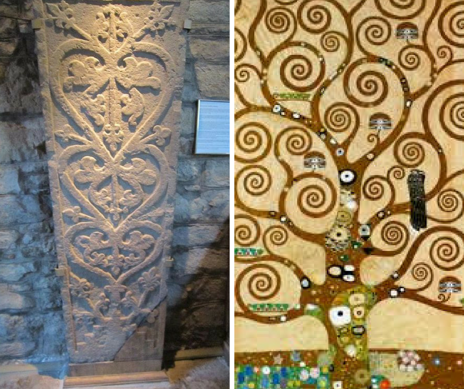 Esta simbología de bosque sagrado y árbol de la vida ha sido ampliamente utilizado en la cultura cristiana llegando incluso a nuestros día La podemos contemplar tanto en una iglesia sueca del siglo XI como en los cuadros del pintor simbólico de finales de siglo XIX Gustav Klimt. Bonaguida va más allá y representa también una cueva en su base con una figura de un santo franciscano que enigmáticamente está tachado. Por similitud con el árbol de Jesé, esta santo está ocupando el puesto del Padre. En el Apocalípsis de Juan, Jesús afirma : Yo soy la raíz y el retoño de David, pero si esta representación la trasladamos a la iglesia protocristiana de San Clemente bien podría aludir a lo que los padres dominicos, que la custodian, han rescatado en sus excavaciones. La Iglesia de San Clemente tiene hasta dos niveles de antigüedad por debajo de la actual. la más profunda ha revelado una cultura que coexistió con los primeros cristianos, la cultura mitraica.